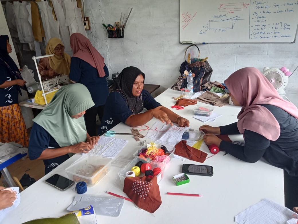 Kami juga mengenalkan konsep produksi bertanggung jawab, pewarna alami, dan pengelolaan limbah tekstil. Selain itu juga literasi keuangan, dan bagaimana untuk memulai bisnis kecil bagi perempuan.